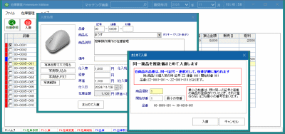 まとめて入庫画面では、同一商品を枝番を連続的に振る事で、一回で複数個入庫する処理を行うことが出来ます。